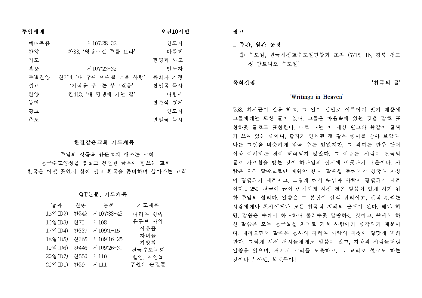 '한결같은교회 > 주보' 카테고리의 다른 글