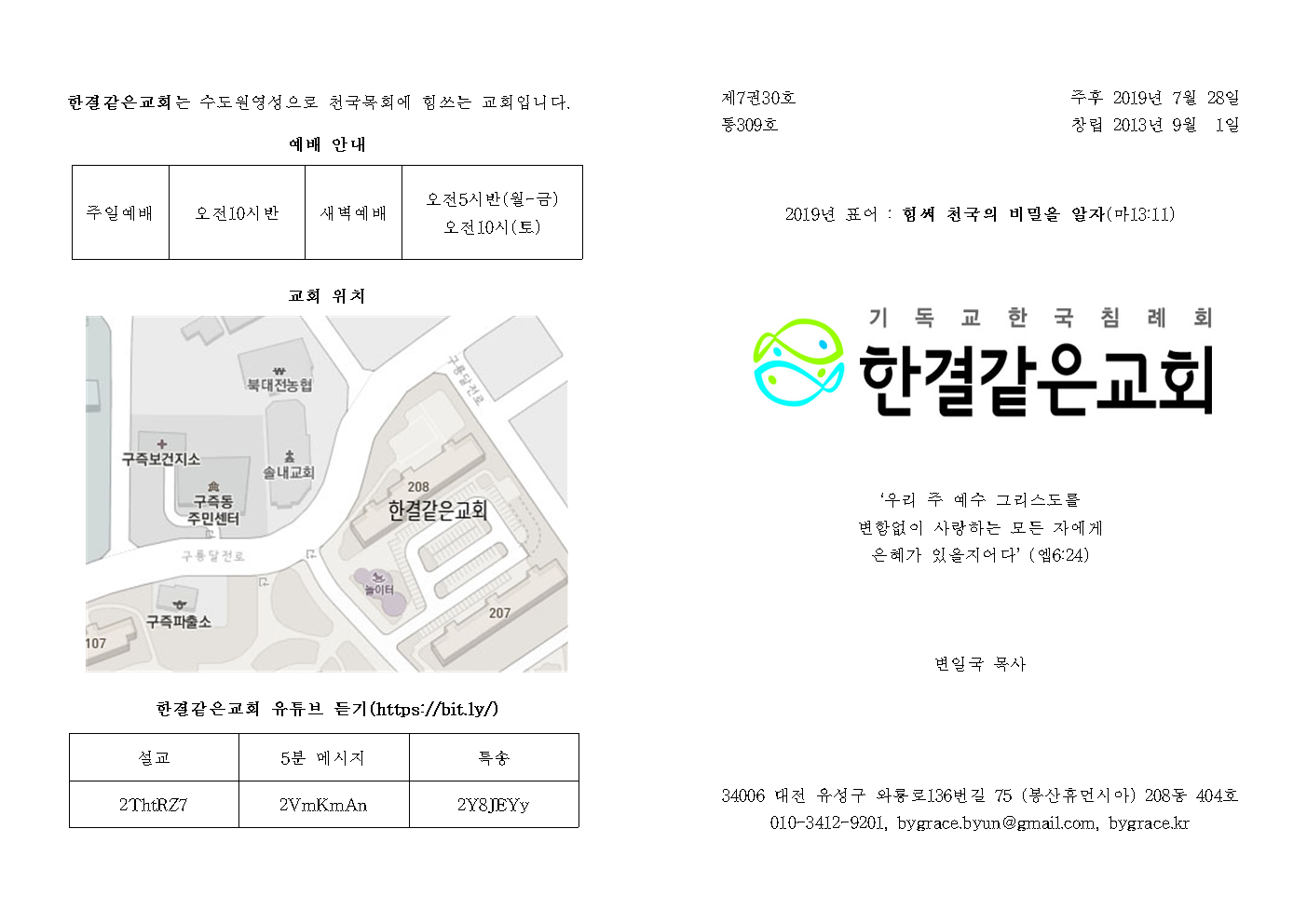 '한결같은교회 > 주보' 카테고리의 다른 글