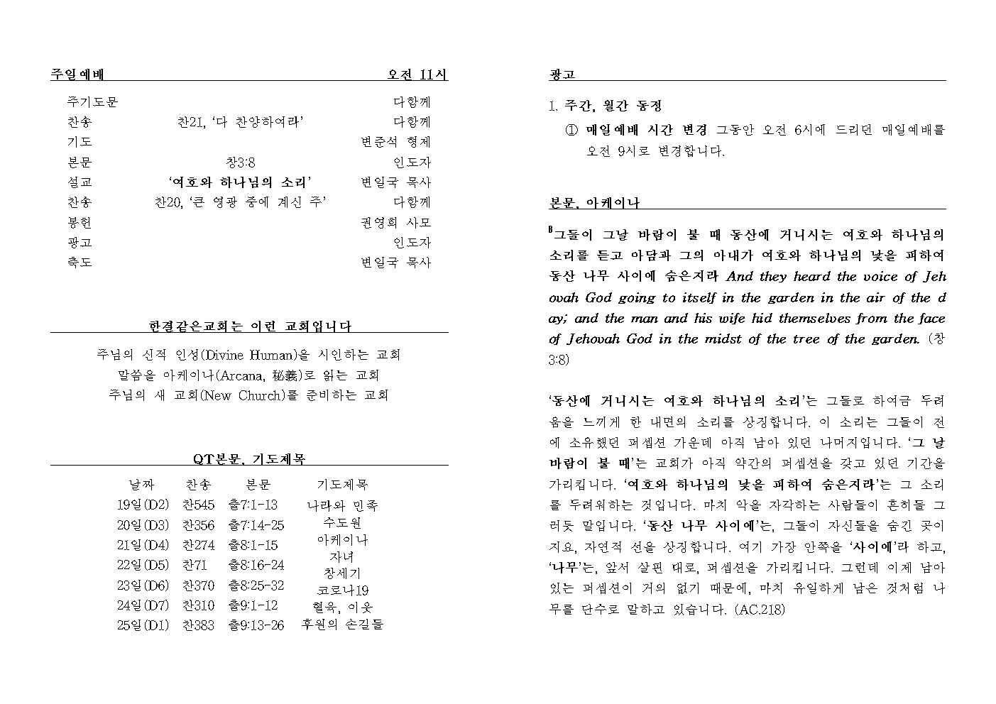 231. 홍수 전 있었던 태고 교회의 악, 뿐만 아니라, 홍수 후인 고대 교회의 악, 그리고 또한 유대 교회의 악, 계속해서 새 교회, 곧 주님 오신 후 시작된 이방 교회의 악, 그리고 오늘날 현 교회의 악까지, 이 모든 악은 주님과 주님의 말씀 대신 자신과 자신의 감각을 믿었고, 그리고 지금도 믿고 있는 것입니다. The evil of the most ancient church which existed before the flood, as well as that of the ancient church after the flood, and also that of the Jewish church, and subsequently the evil of the new church, or church of the Gentiles, after the coming of the Lord, and also that of the church of the present day, was and is that they do not believe the Lord or the Word, but themselves and their own senses.