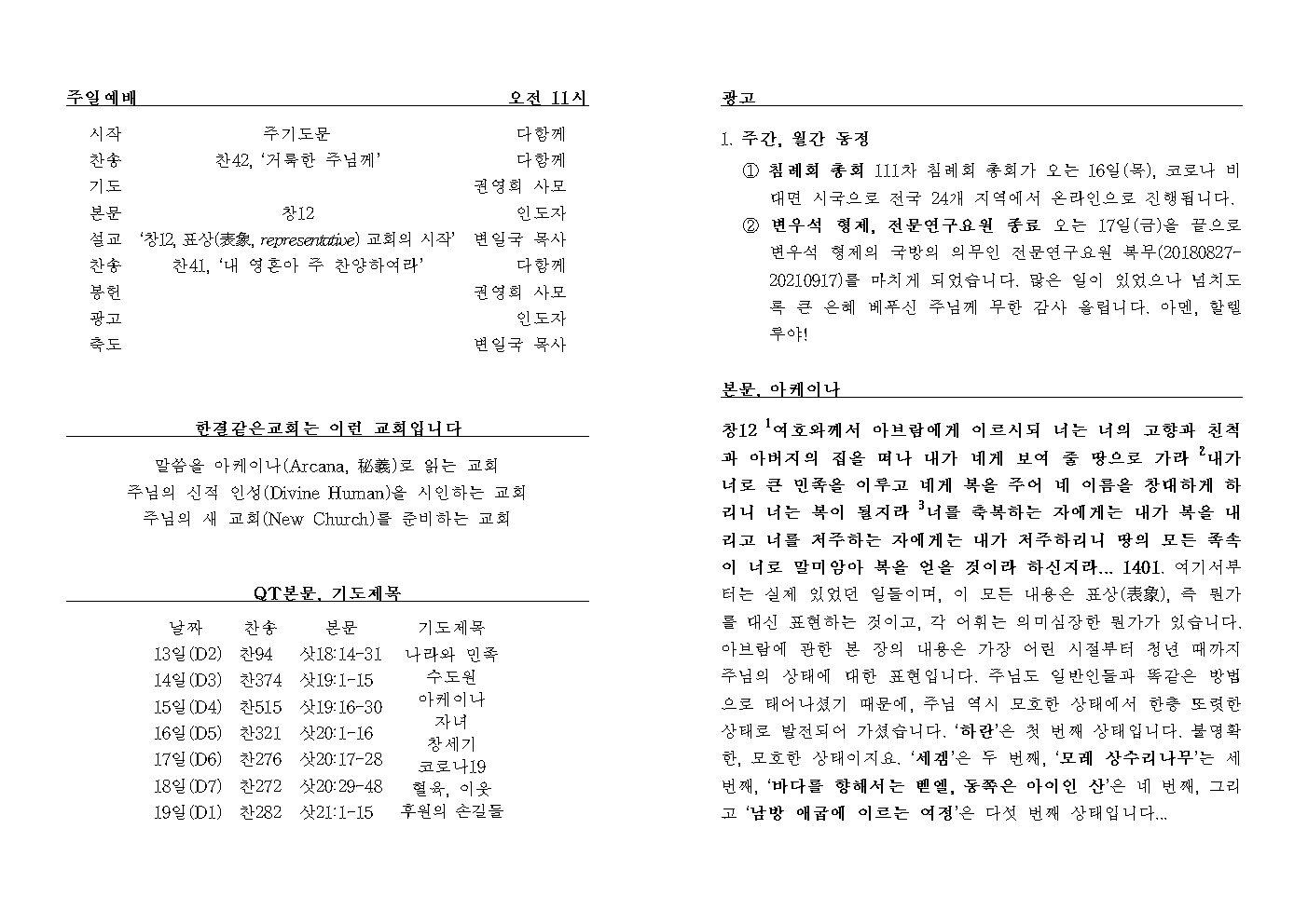 ※ 아브람의 고향은 우상숭배의 땅이었습니다. 아브람은 주님을 표상합니다. 그러므로 주님은 이런 외적인 것들로부터는 물러나 계셔야 하며, 아니 오히려 이런 것들이 주님으로부터 물러나야 하며, 주님 안의 외적인 것들은 역시 주님 안의 내적인 것들과 조화를 이루어야 합니다. (AC.1411)